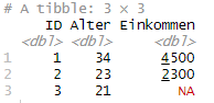 Wir können verschiedene Datenformate, wie csv, txt oder proprietäre Format (Excel), aber auch aus anderen Statistikprogrammen wie bswp. SPSS als tibble (Data Frame - mehr dazu in Sitzung II) in R importieren.