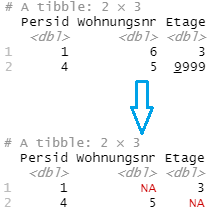 x <- c(8, 5, 23) x## [1] 8 5 23Die Zahlen in aufsteigender Rangordnung: 5, 8 ,23 ; d.h. "5" bekommt Rang 1, "8" Rang 2 und "23" Rang 3. rank(x)## [1] 2 1 3bei gleichen Rängen wird (als Grundeinstellung) der mittlere Rang vergeben.