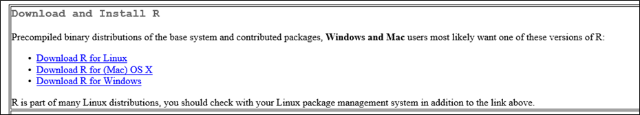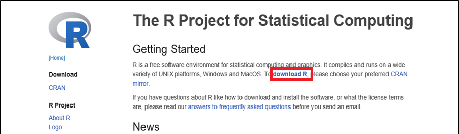 Gehen Sie zu folgendem URL: https://www.r-project.org/ Klicken Sie auf den Link «download R»: