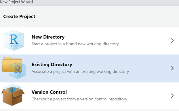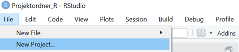 - Eröffnen Sie nun in RStudio ein neues Projekt unter “File/New Project…”