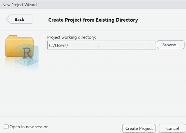 - Navigieren Sie zum bei 1. erstellten Ordner und drücken Sie «Create Project»