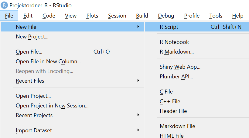 Klicken Sie anschliessend auf File -> New File -> R Script