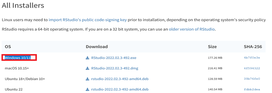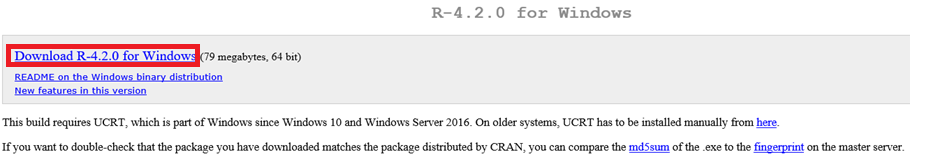 Windows-User können direkt auf den Link «Download R 4.2.0. for Windows» gehen und die Installationsdateien runterladen.