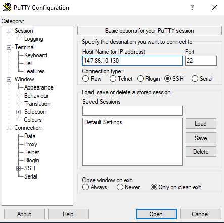 Nach erfolgreicher Installation führen Sie PuTTy bitte aus, um sich mit dem Server zu verbinden.